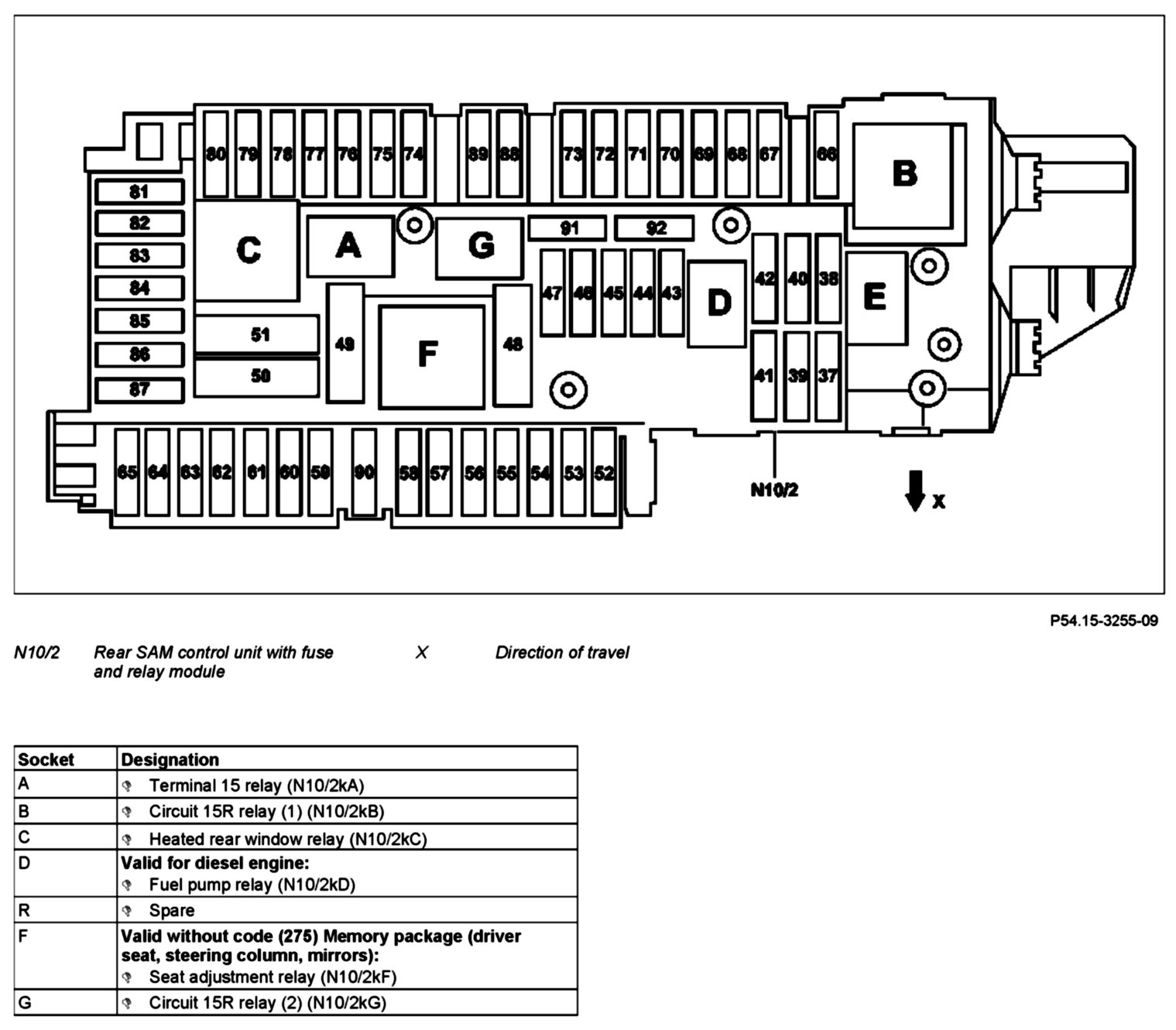 GF54.15-P-1257-04CA Relay Assignment of Fuse and Relay Box In Trunk