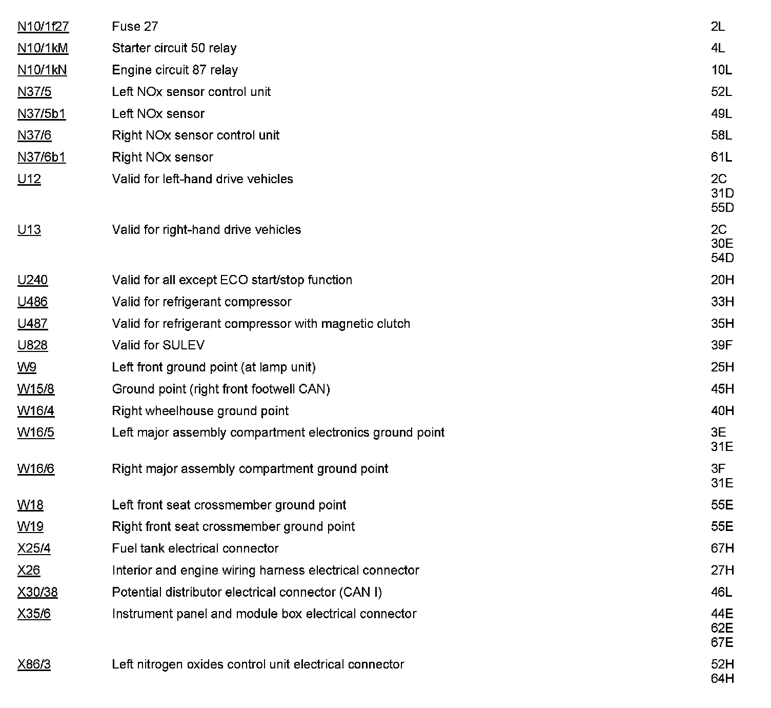 Component Locations: Component Location photographs can be found via their component names at the vehicle level. Component Locations