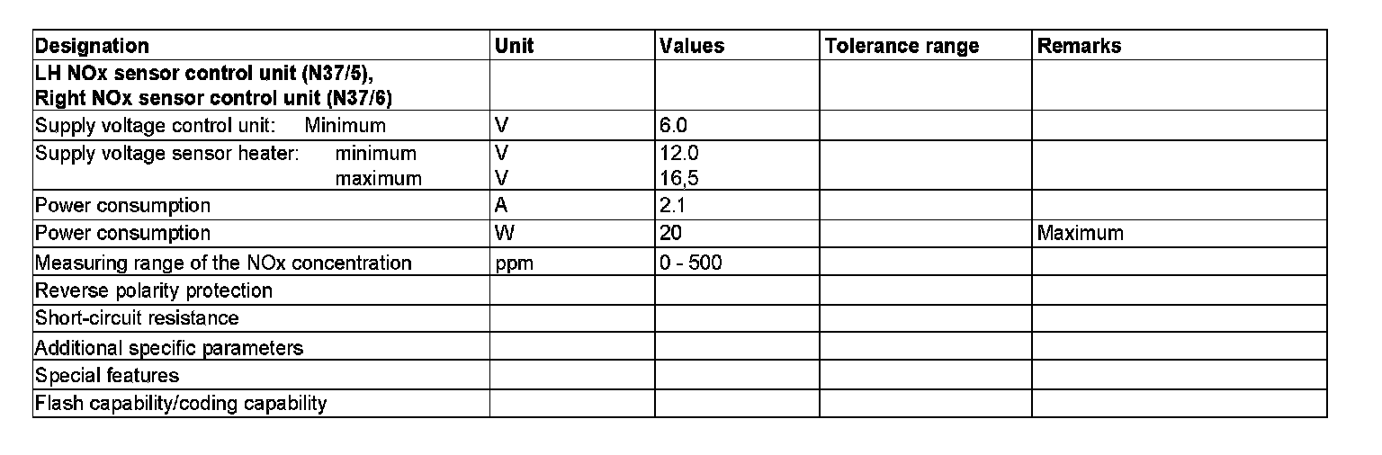 The NOx sensors control units evaluate the following input signals and send the corresponding output signals: