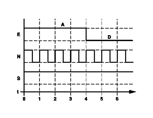 As soon as circuit 15R is activated, both red LEDs integrated into the emergency call system button light up during the self-test of the emergency call system control unit for approx. t = 4 s.