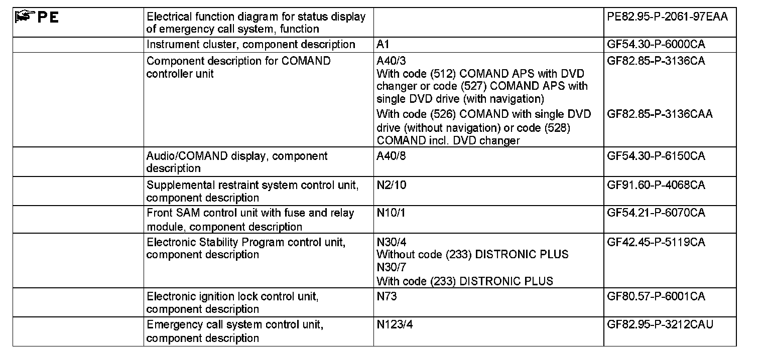 - Communication with the supplemental restraint system control unit (N2/10) and the Electronic Stability Program control unit (N30/4) (without code (233) DISTRONIC PLUS) or the Premium Electronic Stability Program control unit (N30/7) (with code (233) DISTRONIC PLUS)