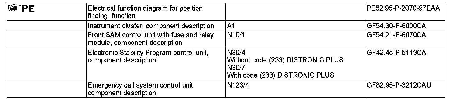 - Electronic Stability Program control unit (N30/4) (without code (233) DISTRONIC PLUS) or the Premium Electronic Stability Program control unit (N30/7) (with code (233) DISTRONIC PLUS).