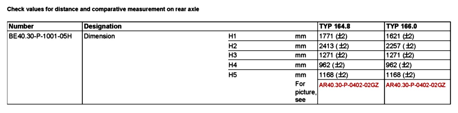 BE40.30-P-1000-05H Test values for distance and comparison measurements on rear axle