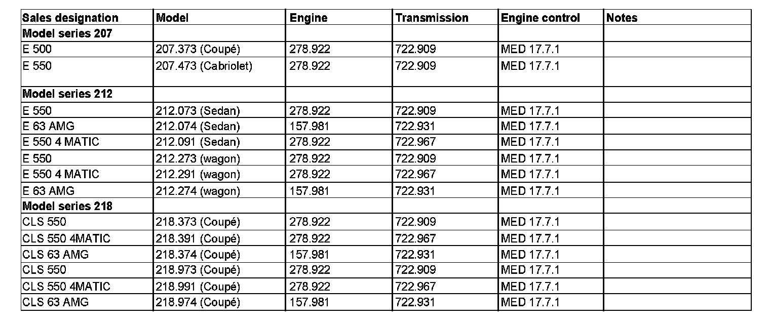 Using variant coding the following vehicle versions and equipment can be coded using Xentry Diagnostics: