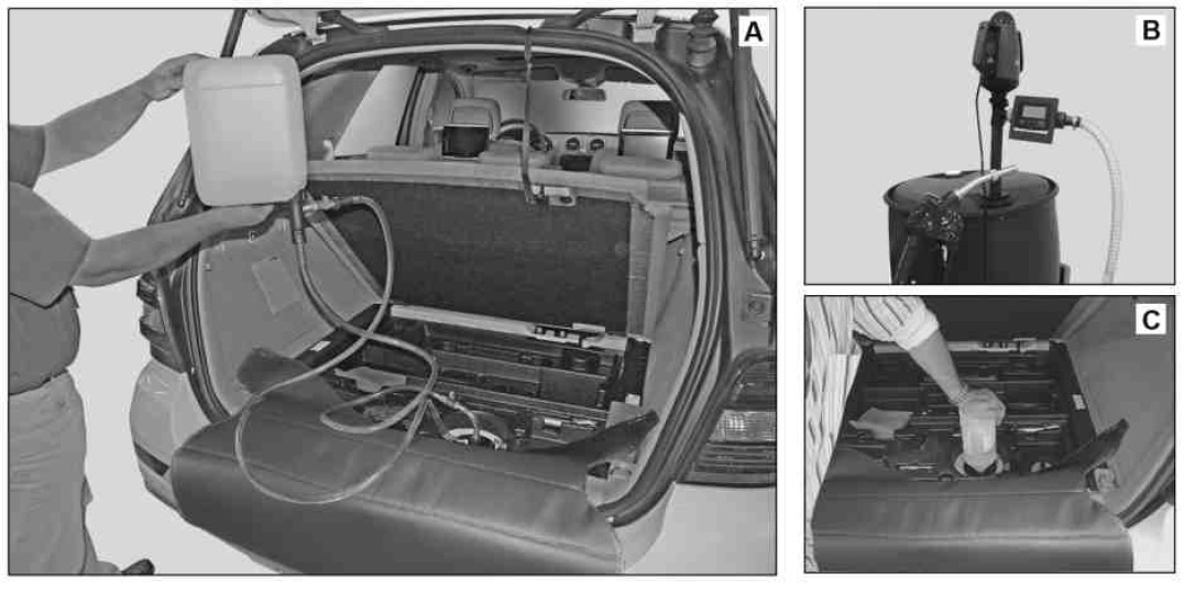 B Filling the pump from a large container