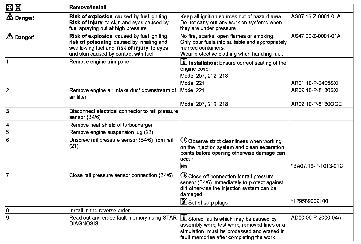 AR07.16-P-1055SXI Remove/Install Rail Pressure Sensor
