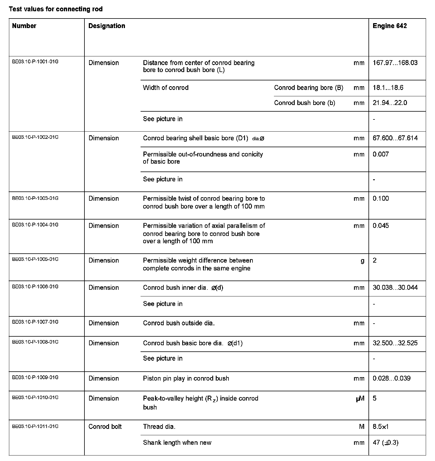 BE03.10-P-1000-01G Test Values For Connecting Rod