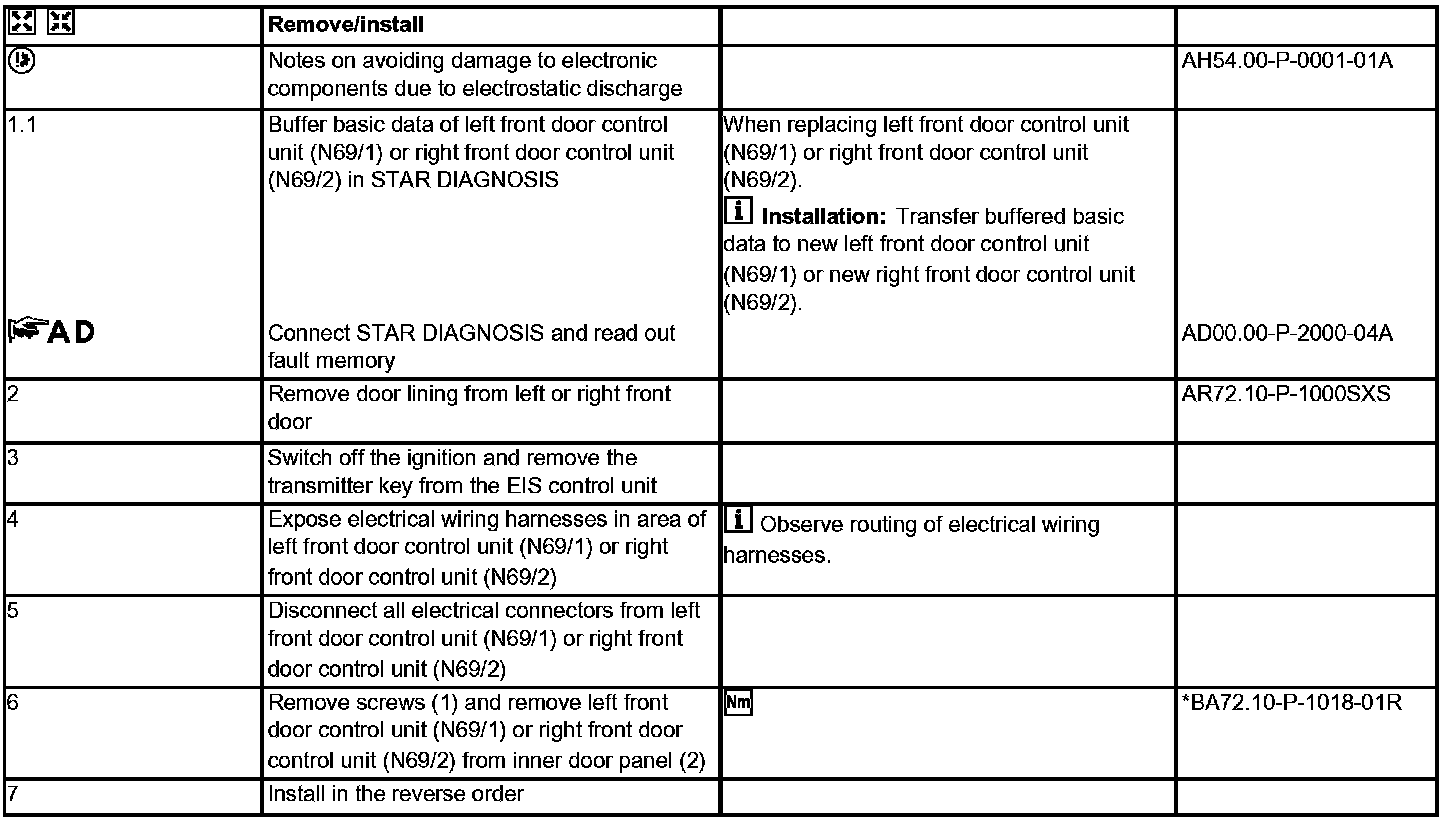AR72.29-P-1000SXS Remove/Install Front Door Control Unit