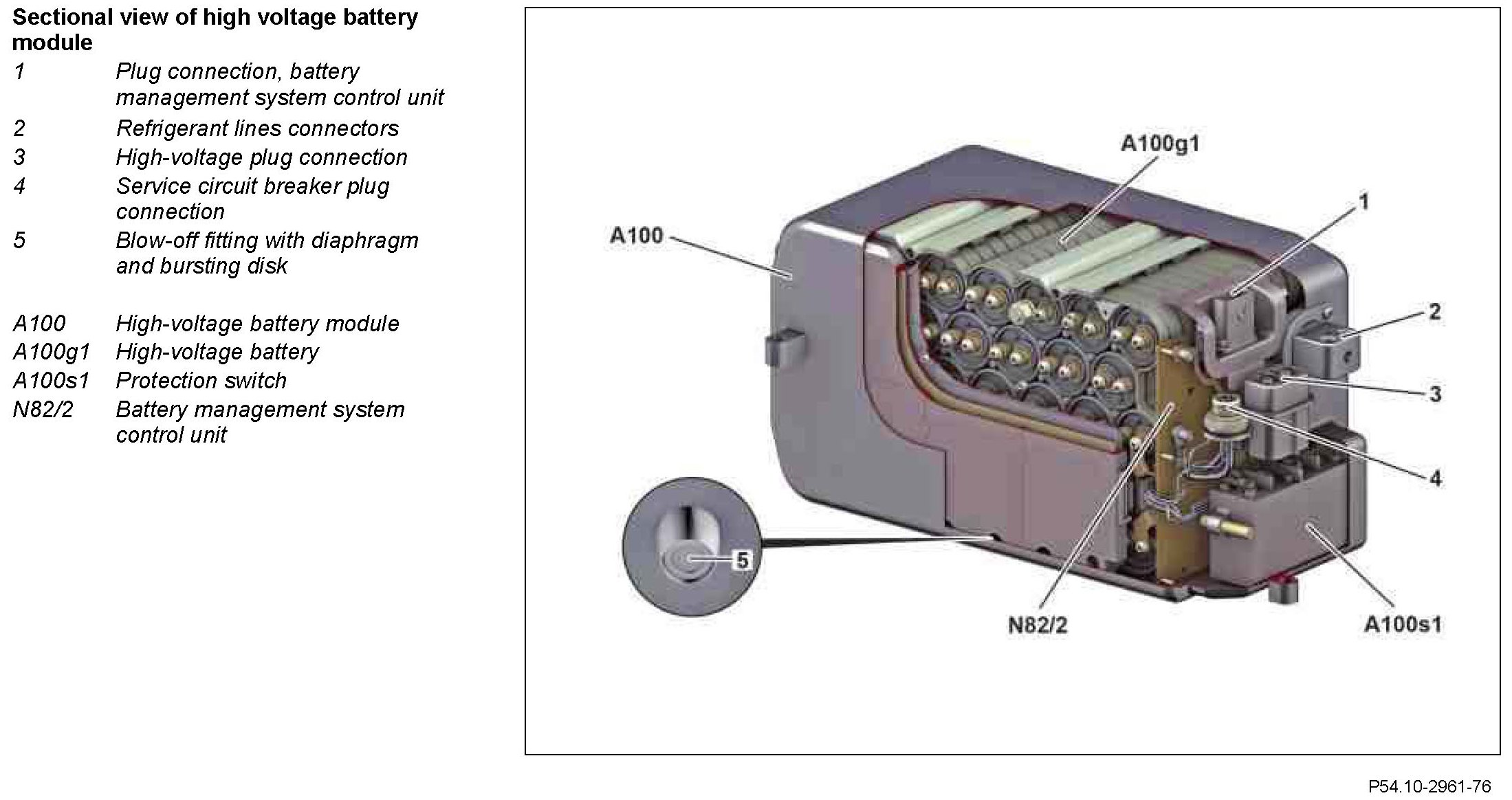 The temperature sensors for the high voltage battery cells (A100b2) are integrated into the high voltage battery.