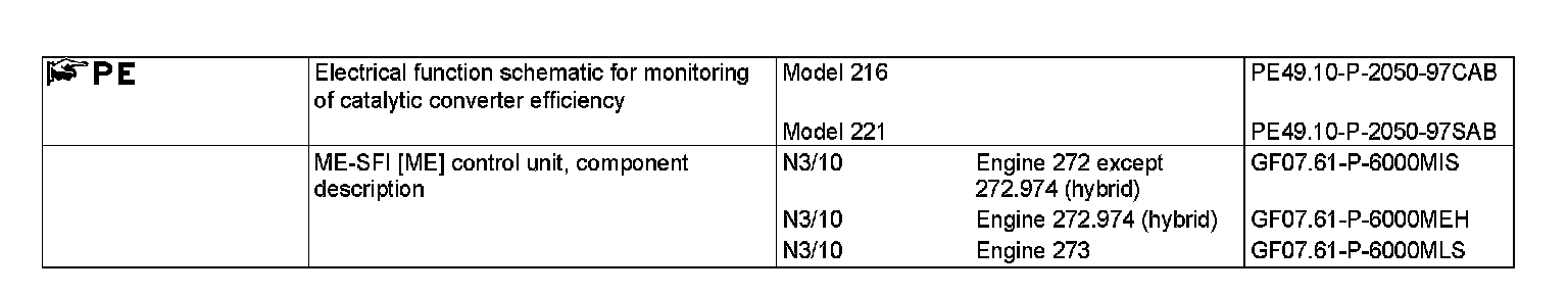 ENGINES 272.9 in MODEL 221.0 /1 as of model year 2009 /YoM 08
