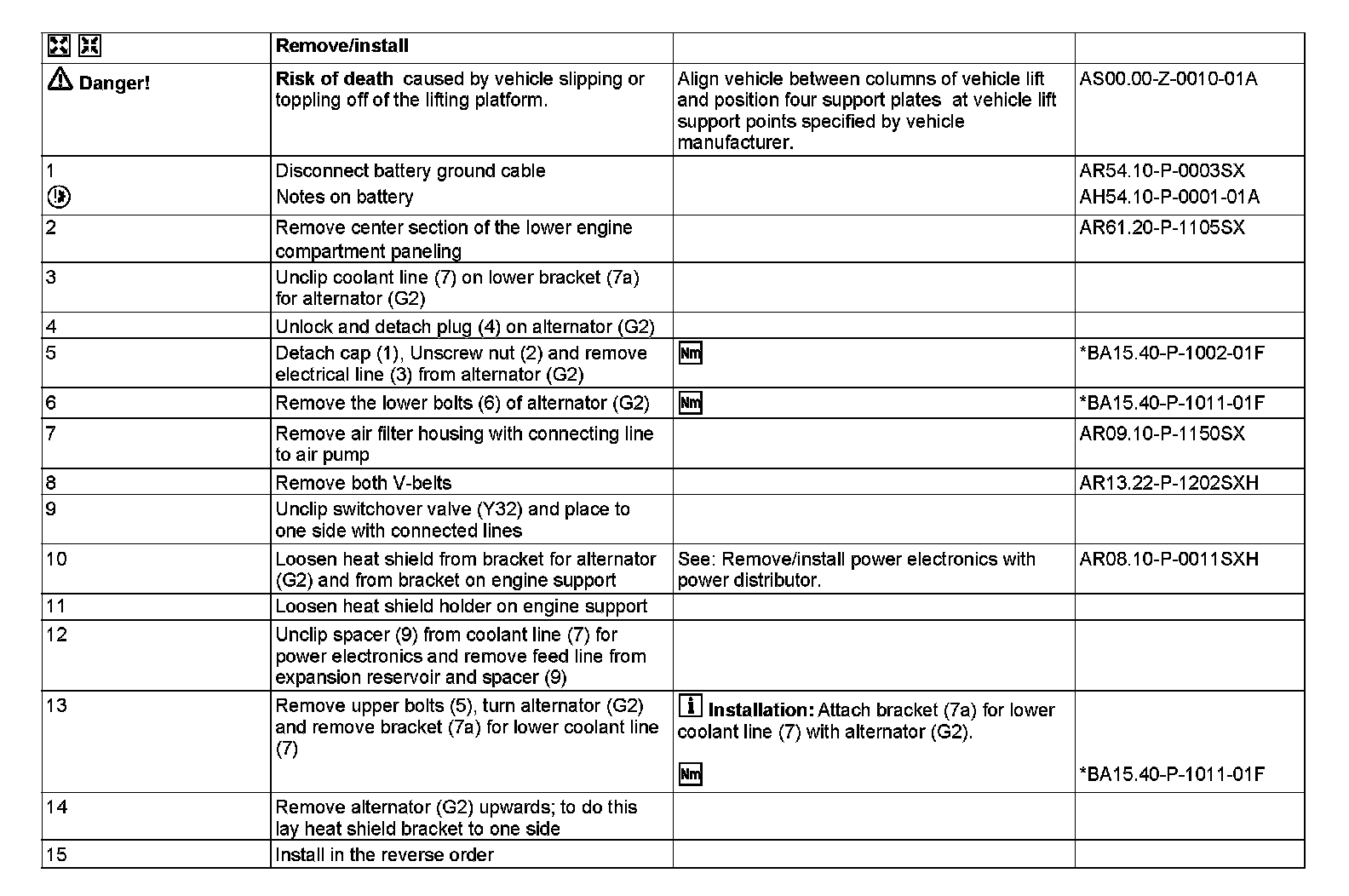 AR15.40-P-5032SXH Remove/Install Alternator