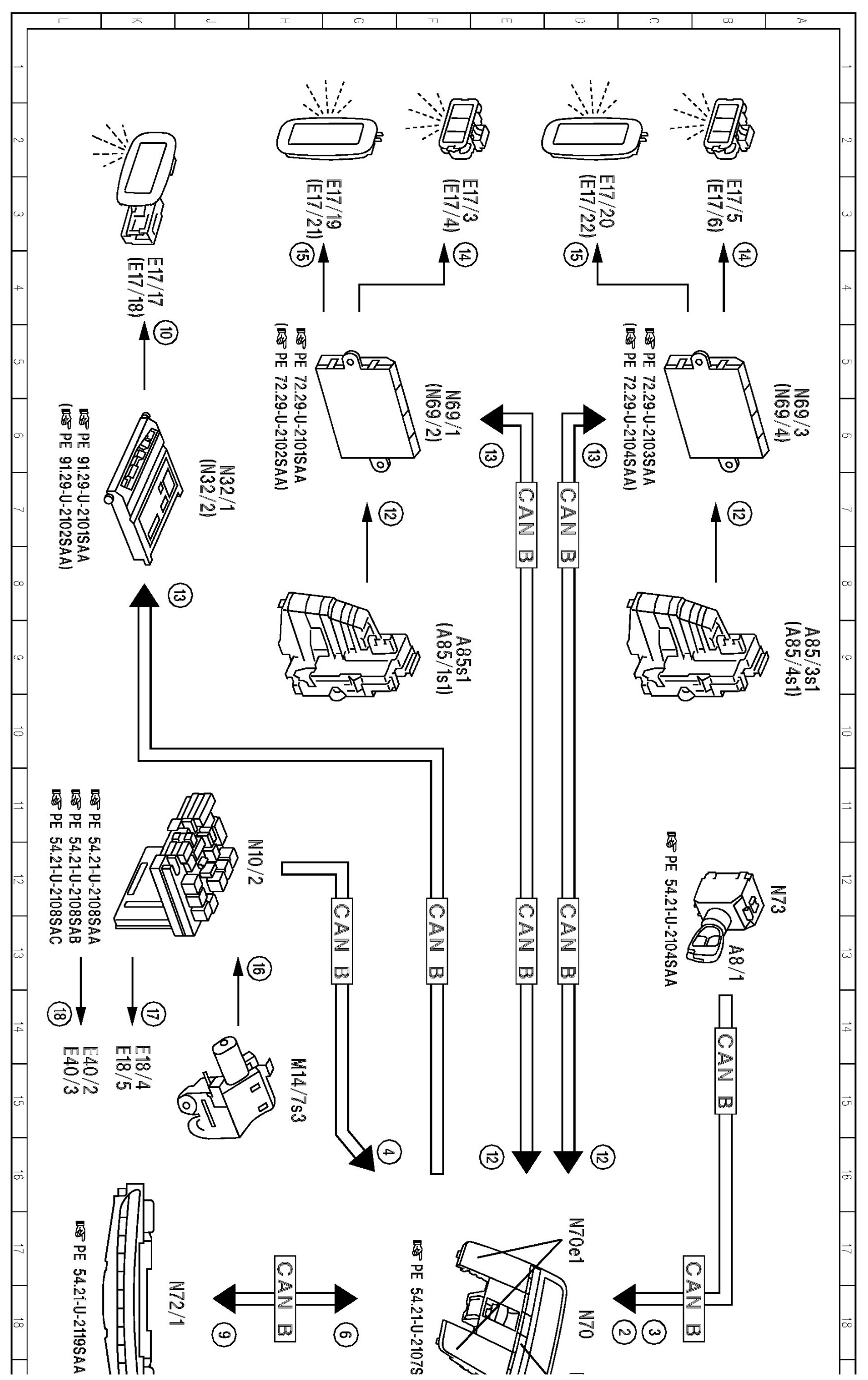 PE82.20-U-2052SAA Electrical Function Schematic For Automatic Interior Lights Control