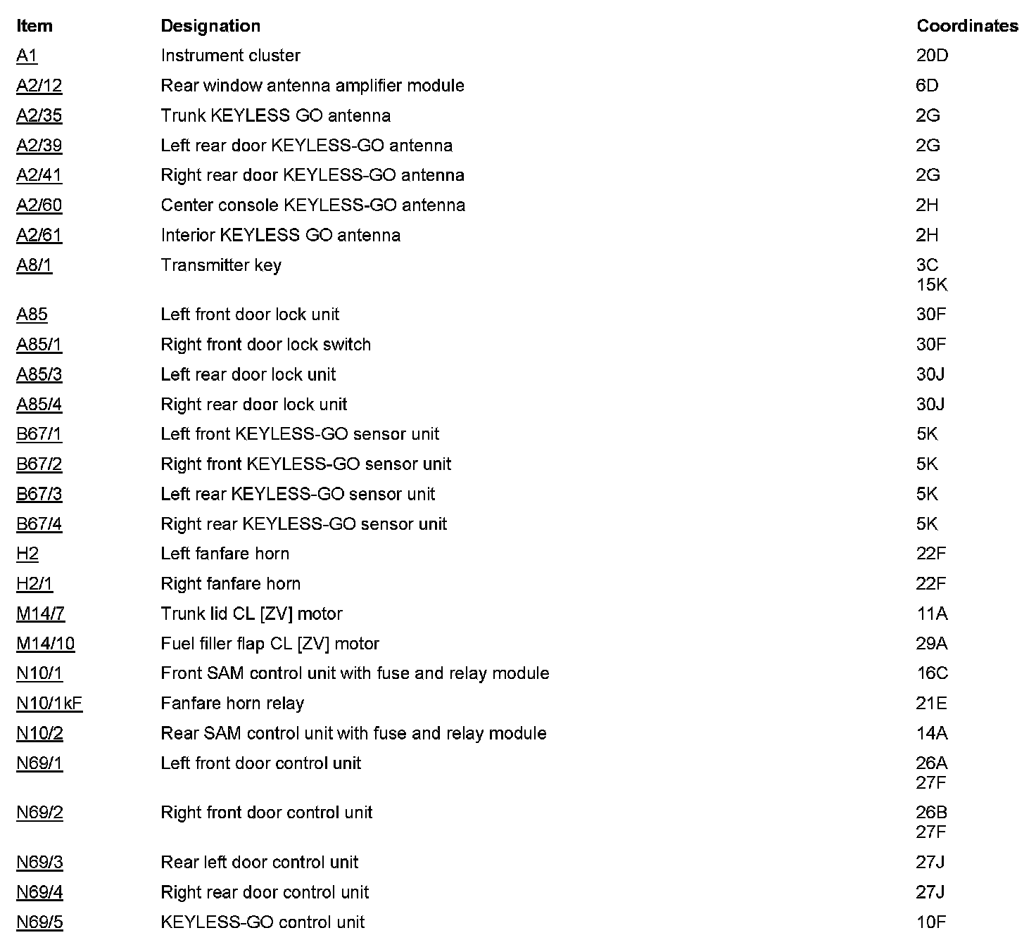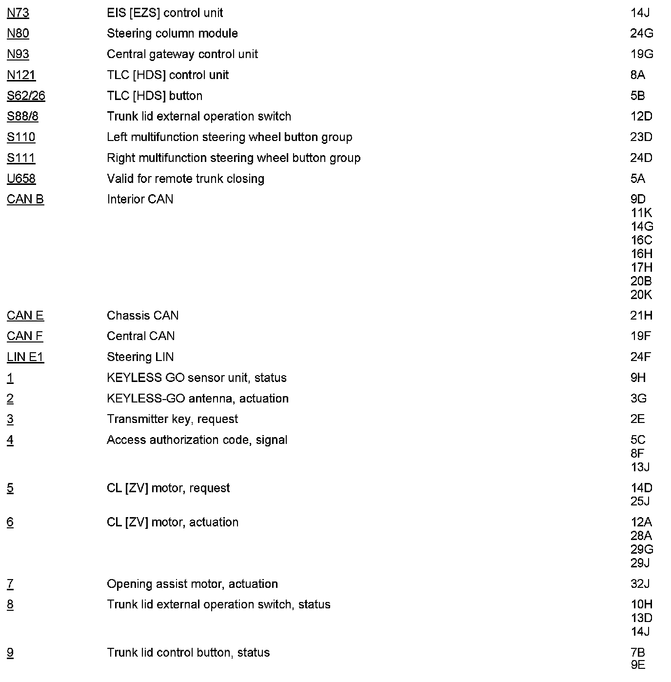 PE80.61-U-2051SAA Electrical Function Schematic For KEYLESS-GO Locking/Unlocking Function