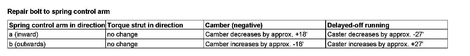 Repair bolt to spring control arm and torque strut: