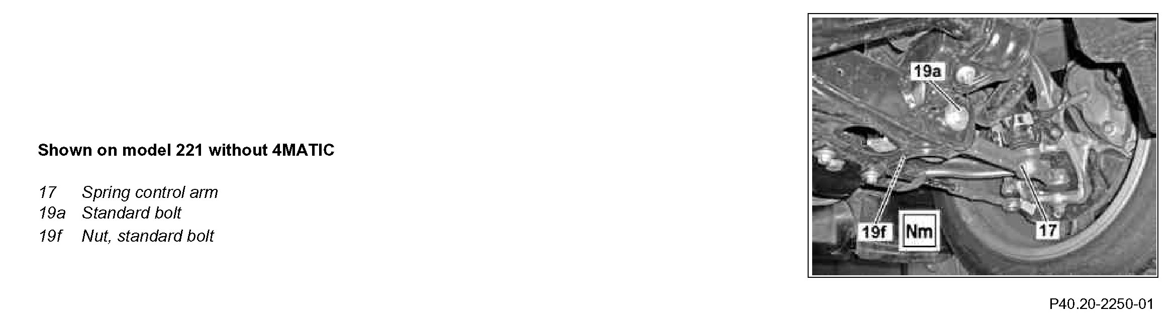 2 Remove series bolt (19a) with nut (19f) on spring control arm (17).