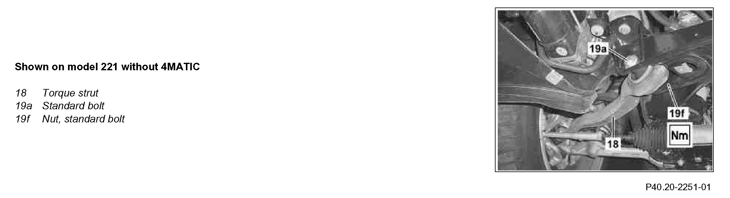 3 Remove standard bolt (19a) with nut (19f) to torque strut (18).