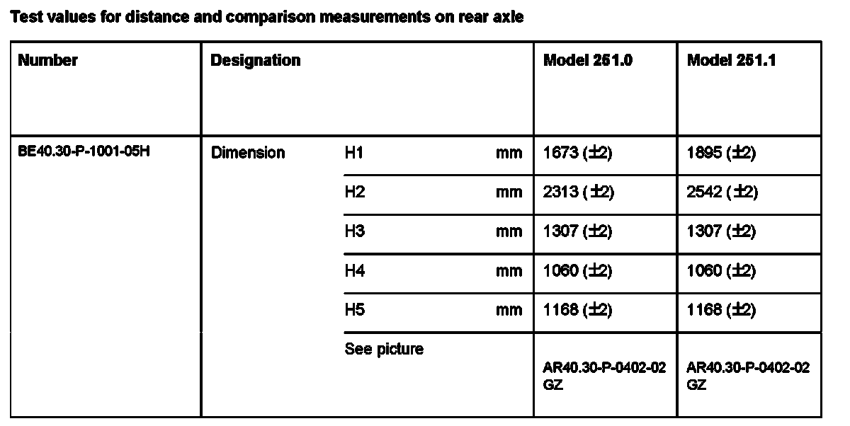 BE40.30-P-1000-05H Test values for distance and comparison measurements on rear axle