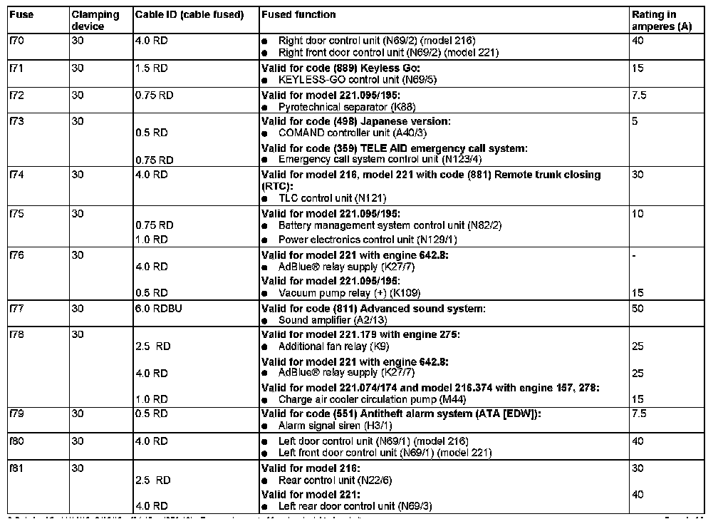 Fuse F70 To F79: