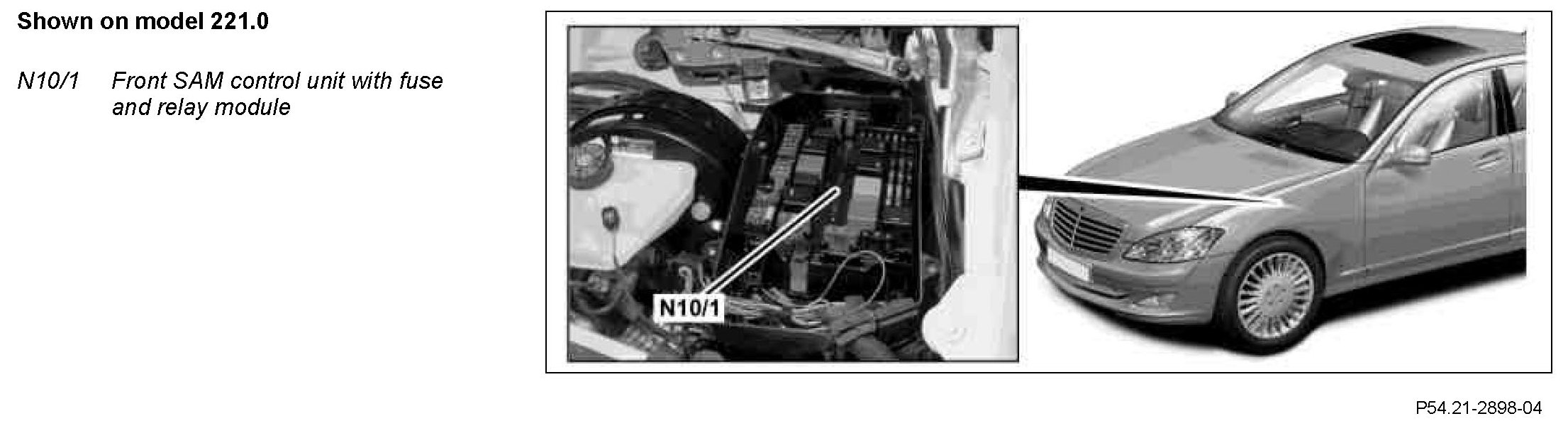 Requests are notified to the front SAM control unit over either the interior CAN or directly scanned switches, transmitters an sensors. Fuses are used to protect the components and control units that have voltage applied to them against overloading. Detailed information is available in the fuse and relay box, as-built configuration specification.