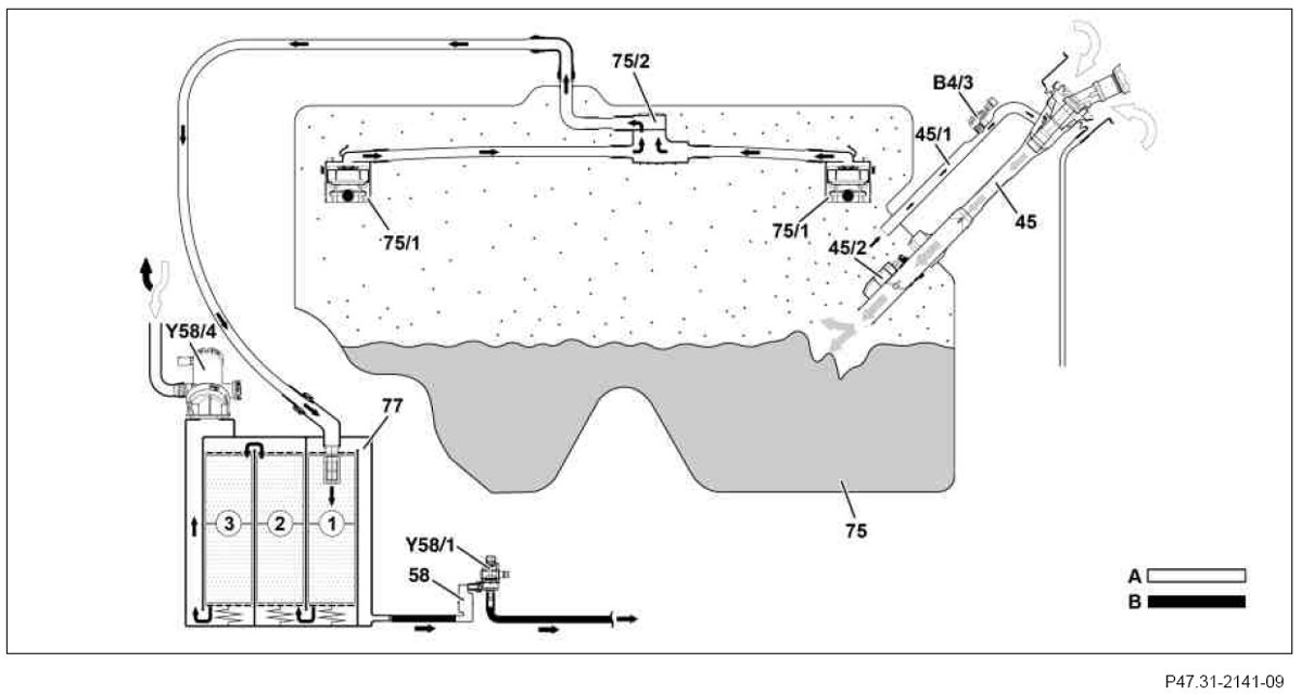 As result, a vacuum forms in the fuel tank, which is detected by the fuel tank pressure sensor (B4/3).