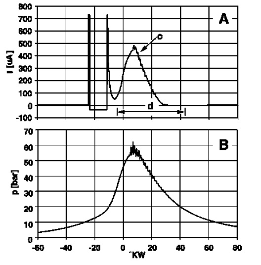 Ionic current signal and cylinder pressure