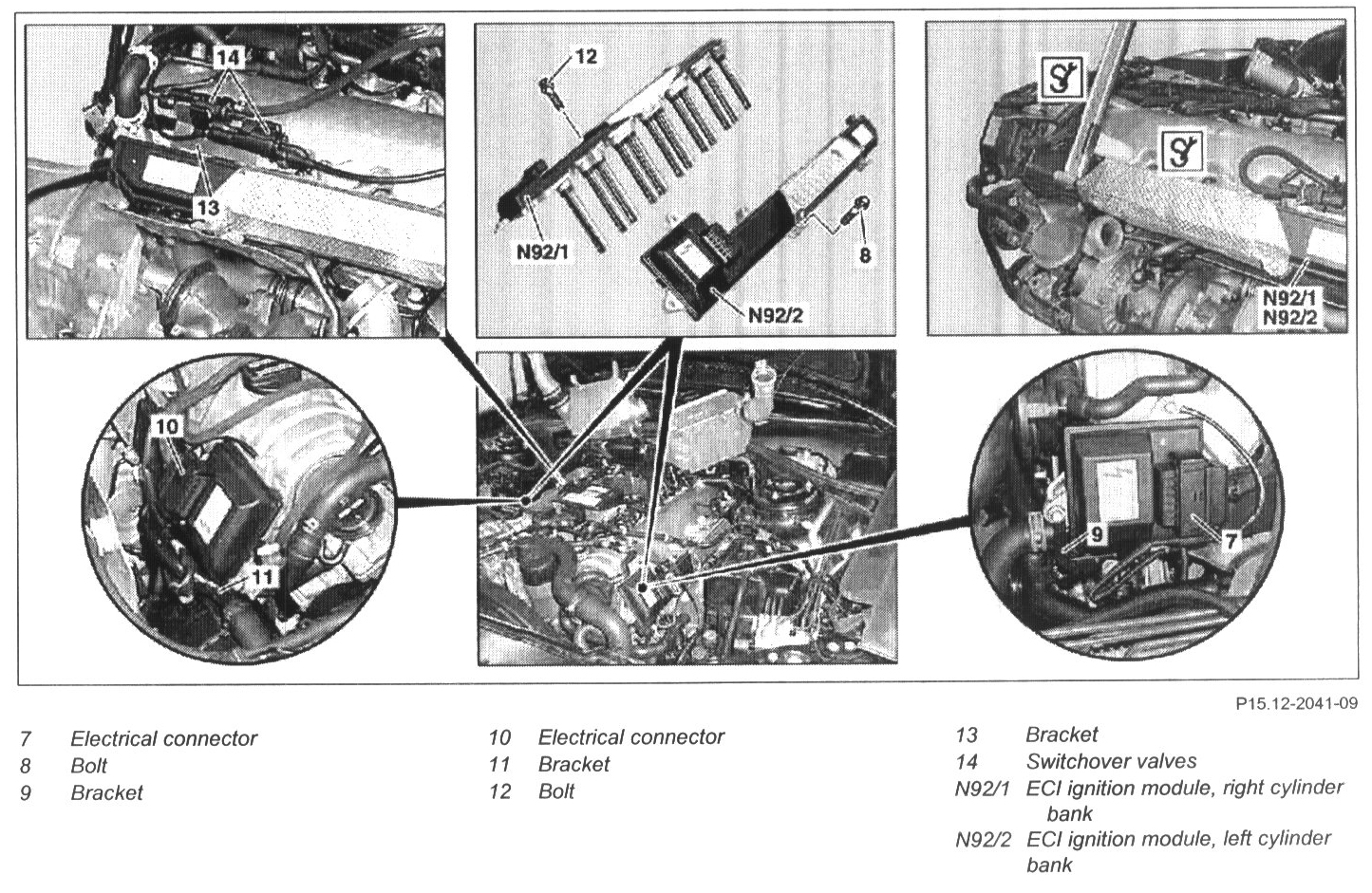 15 Remove ECI ignition module, left cylinder bank (N92/2) or ECI ignition module, right cylinder bank (N92/1) with a special tool