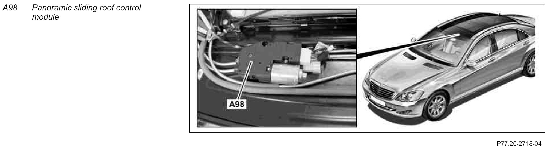 - Integrated panoramic sliding roof motor (A98m1)