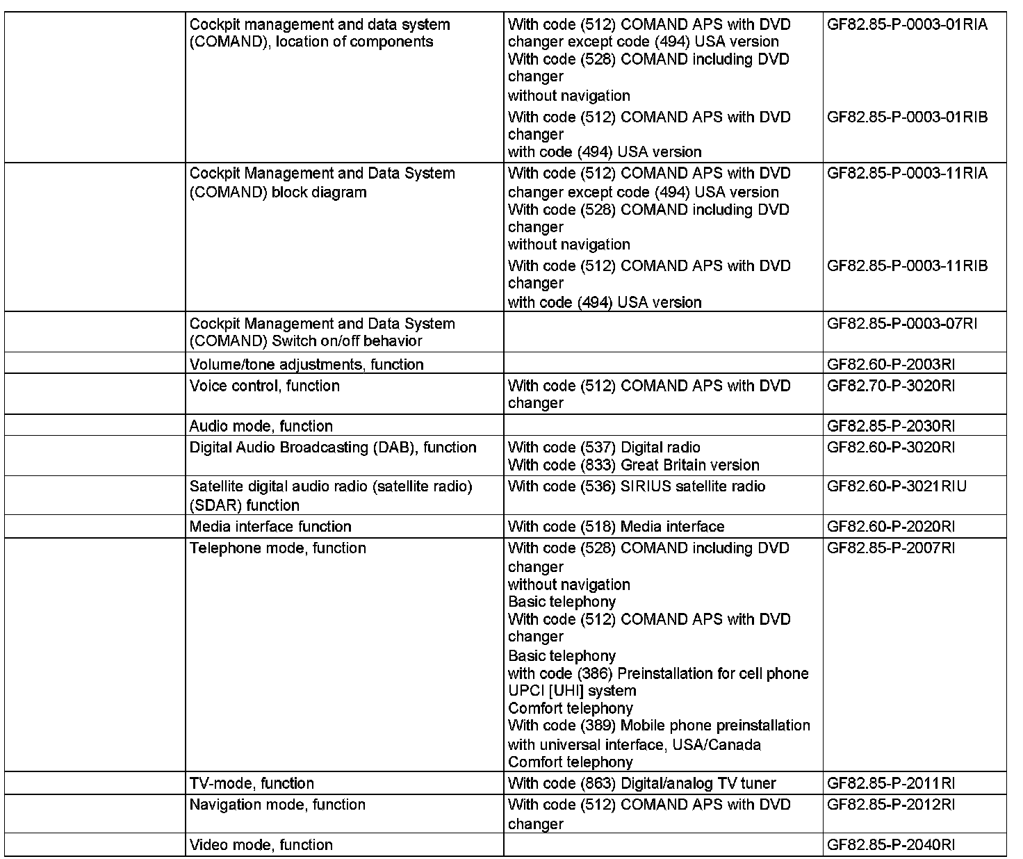 - with CODE (528) COMAND with DVD changer without navigation system