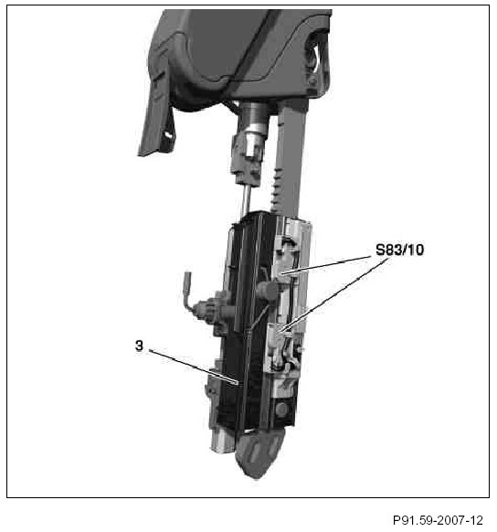 The roll bar "down/up" limit switch (S83/10) is located on the right side in the area of the B-pillar