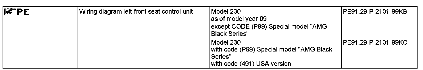 - as of model year 2009 except CODE (P99) [model 230.479]