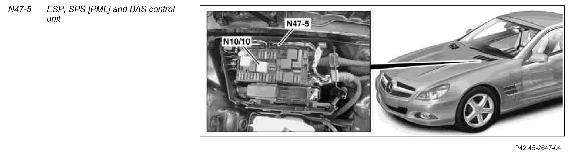 The ESP, SPS [PML] and BAS control unit is the master control unit for the Electronic Stability Program (ESP) and has the following tasks: