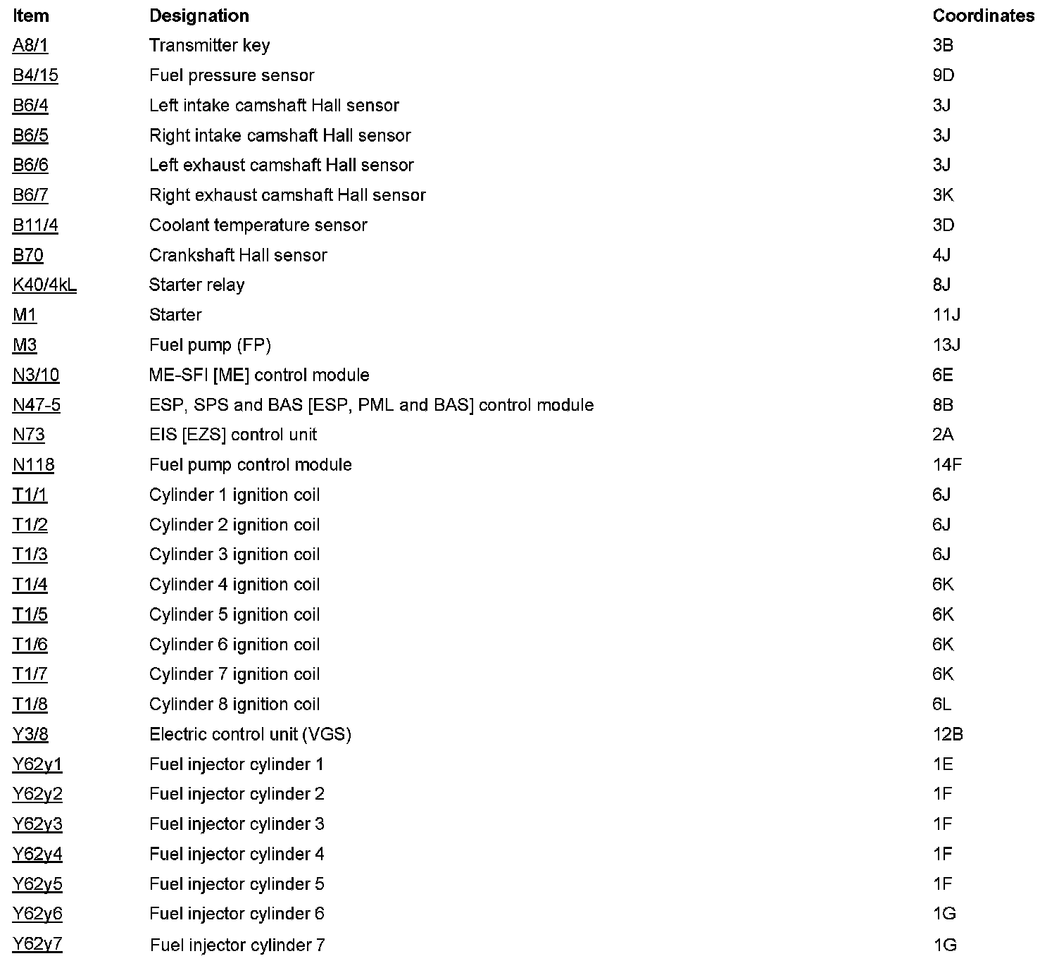 Component Locations: Component Location photographs can be found via their component names at the vehicle level. Component Locations