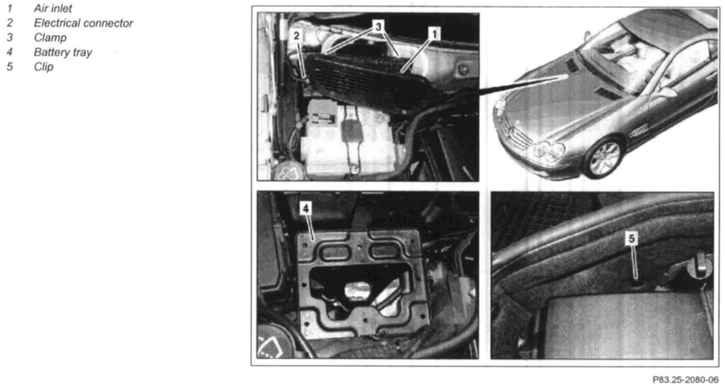 2 Unscrew battery tray (4) and remove