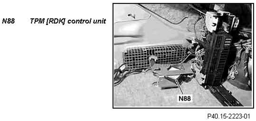 The TPM [RDK] control unit is located in the rear left-hand side of the luggage compartment
