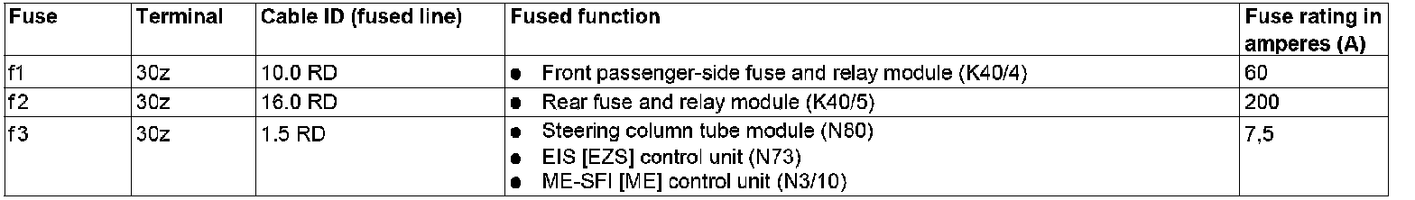 GF54.15-P-1256-08RI Fuse Assignment of Rear Prefuse Box