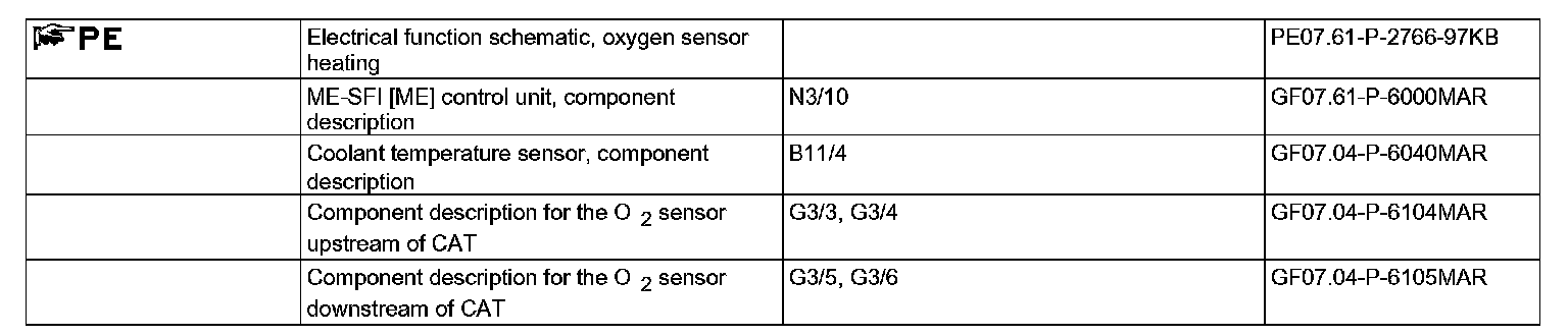 Temperature control and temperature measurement (by measuring the internal resistance) is performed by special control electronics in the ME-SFI [ME] control unit (N3/10)