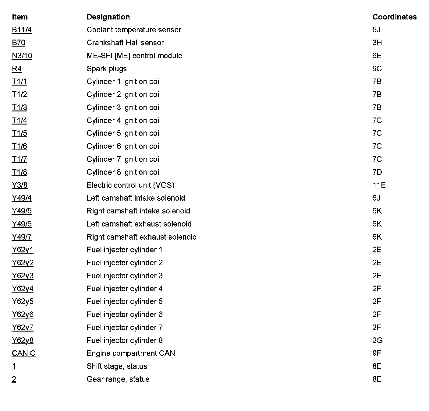 Component Locations: Component Location photographs can be found via their component names at the vehicle level. Component Locations