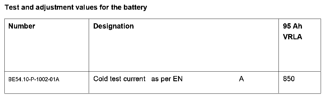 Test And Adjustment Values For The Battery: