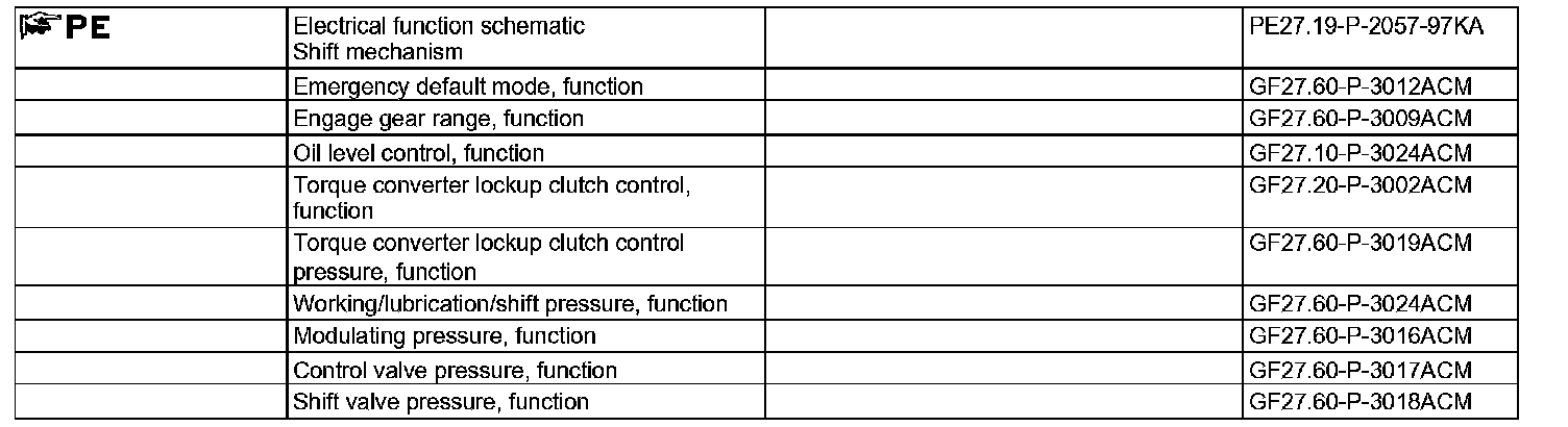 The electric controller unit (Y3/6) converts the electrical signals coming from the ETC control unit (N15/3) into hydraulic signals. The electronic selector lever module control unit (N15/5) passes on the selector lever positions "P, R, N, D" to the ETC control unit, taking into account various information. The MINUS steering wheel gear shifter (S110/1) and PLUS steering wheel gear shifter (S111/1) (with code (428) Steering wheel shift paddles) enables preselection of the shifting range up to which the transmission can shift.