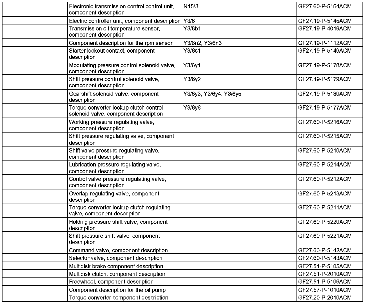 The level of shift pressure is determined by the shift pressure control solenoid valve (Y3/6y2) and shift pressure regulating valve. It regulates the pressure in the engaging actuator during the shift phase. Together with the modulating pressure the shift pressure determines the pressure release regulated by the overlap regulating valve at the disengaging actuator and initializes 2nd gear in limp-home mode.