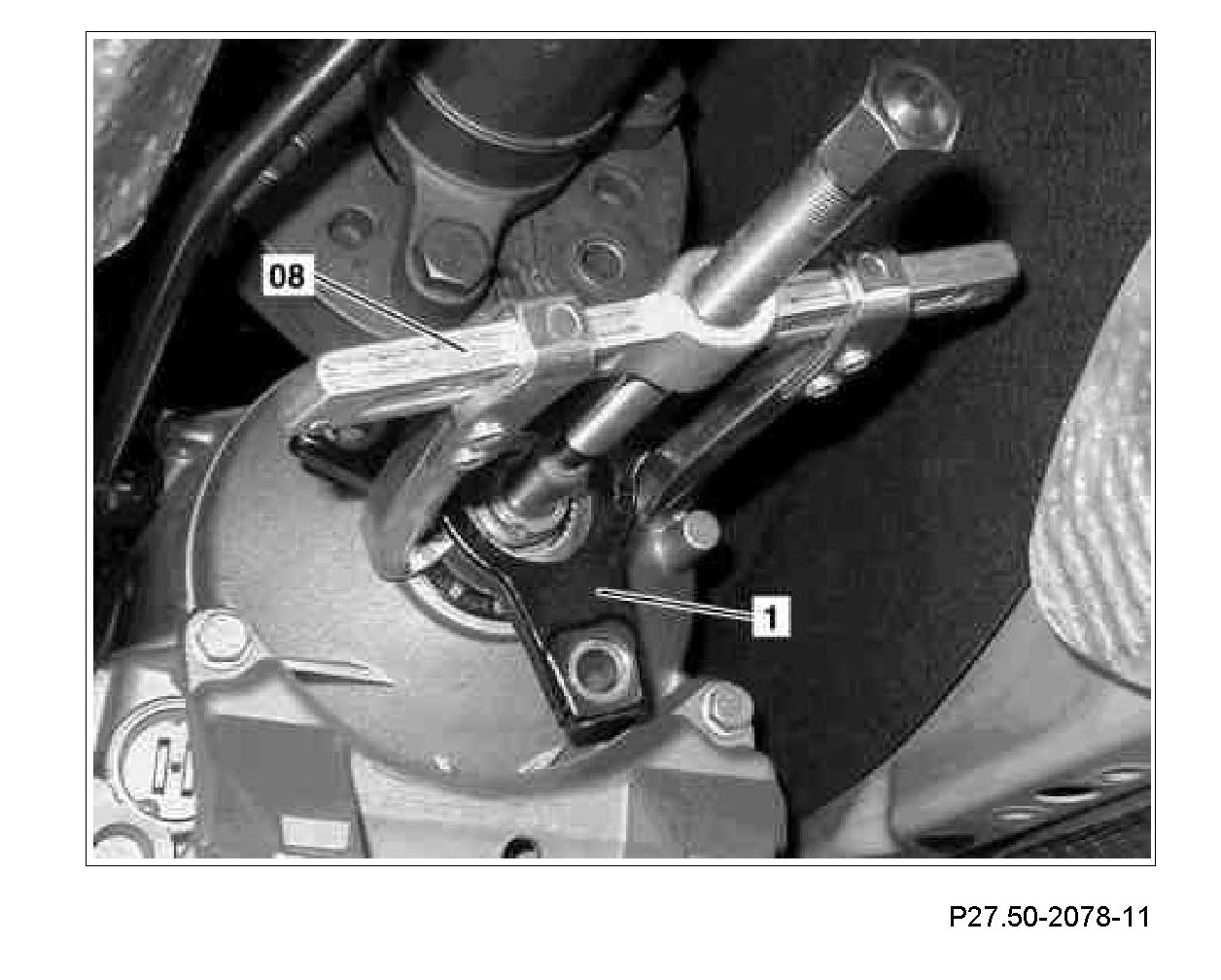 3.1 If output flange (1) is stuck, use puller (08).