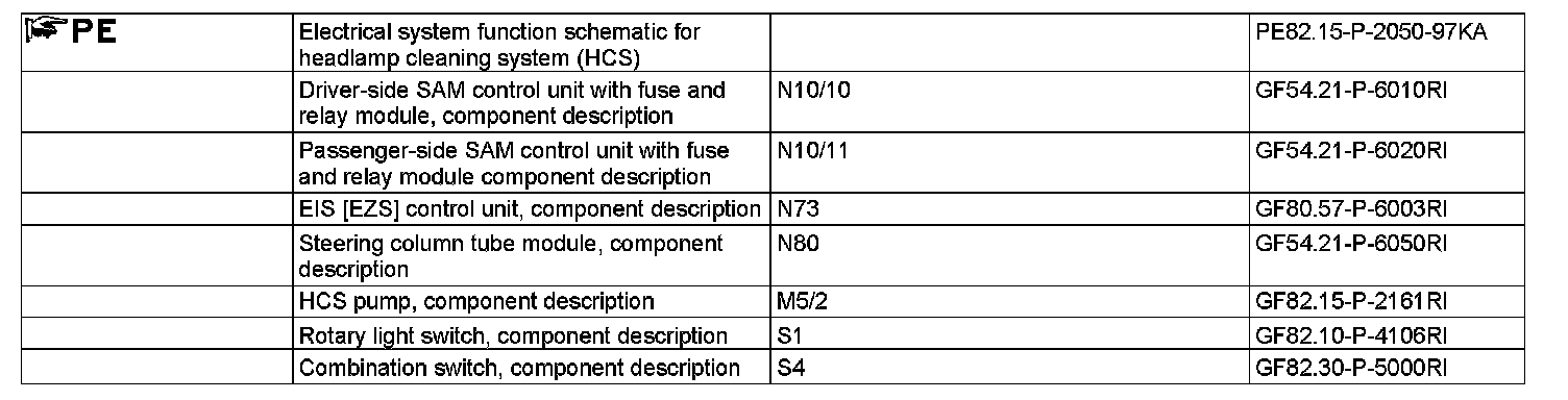 After 15 washing requests by the combination switch (S4), which is read in by the steering column tube module (N80), the request is transmitted via the interior CAN to the front passenger-side SAM control unit (N10/11).