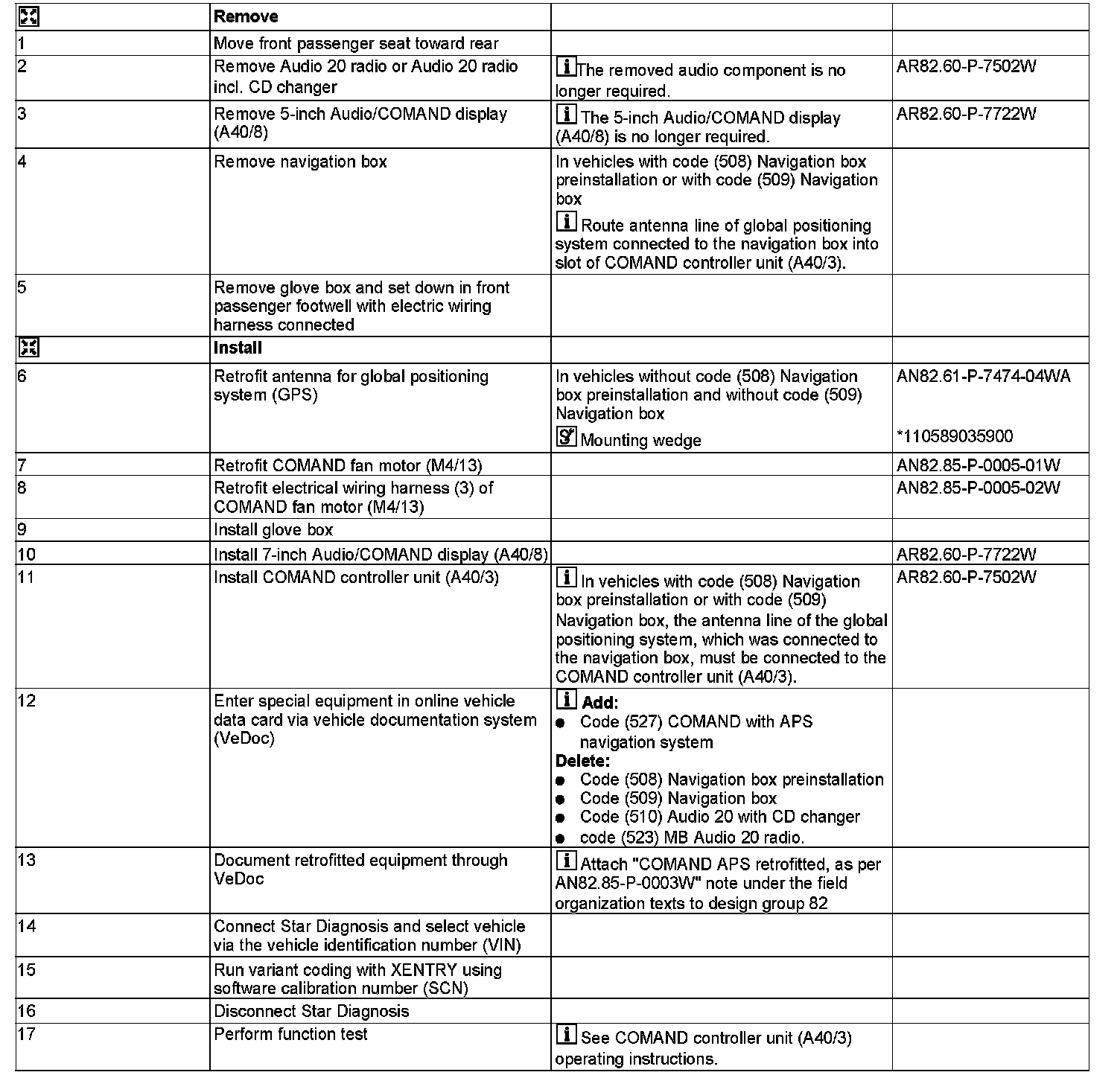 - except CODE (512) COMAND APS with DVD changer