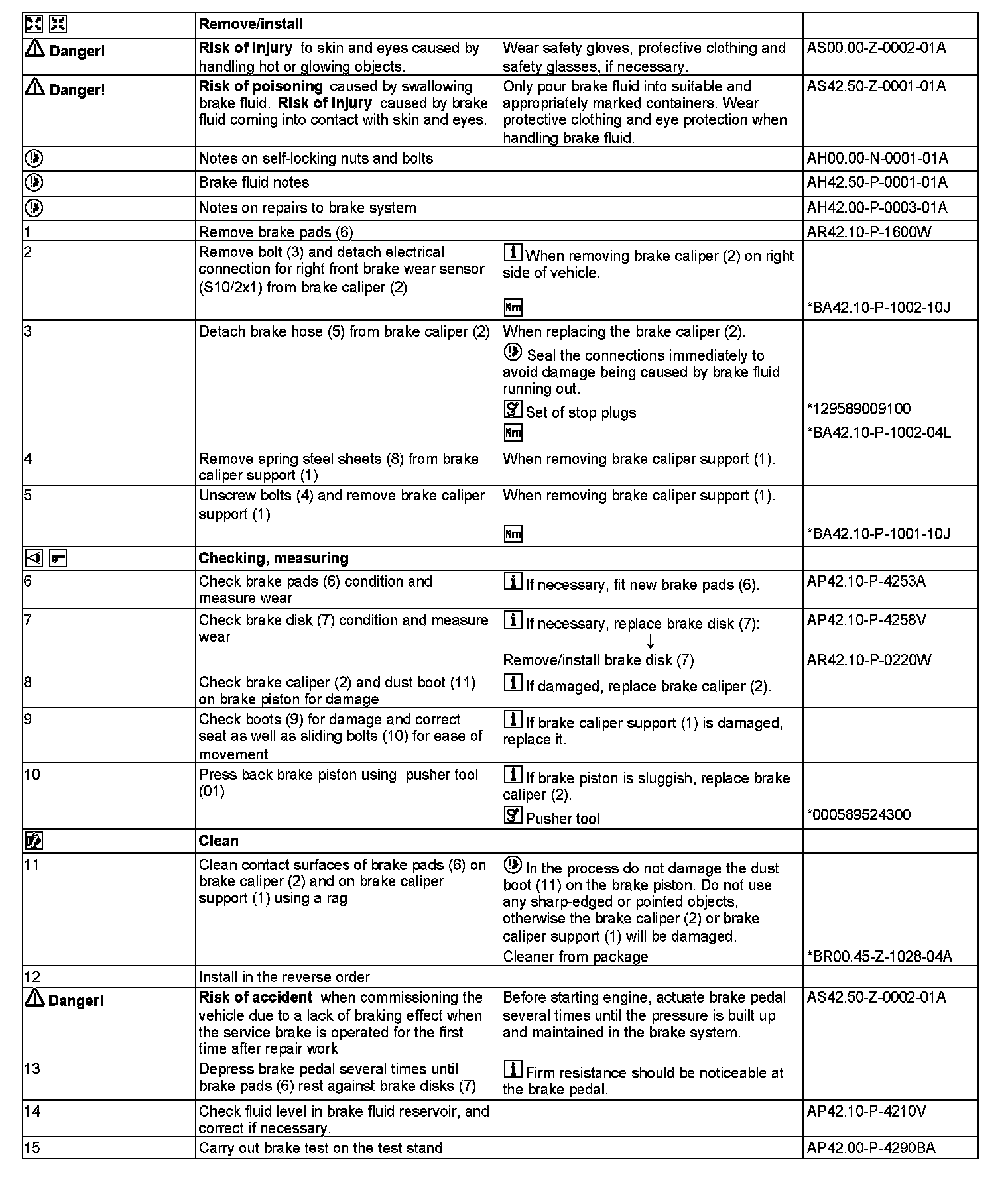 AR42.10-P-0070W Remove/Install Front Axle Brake Caliper