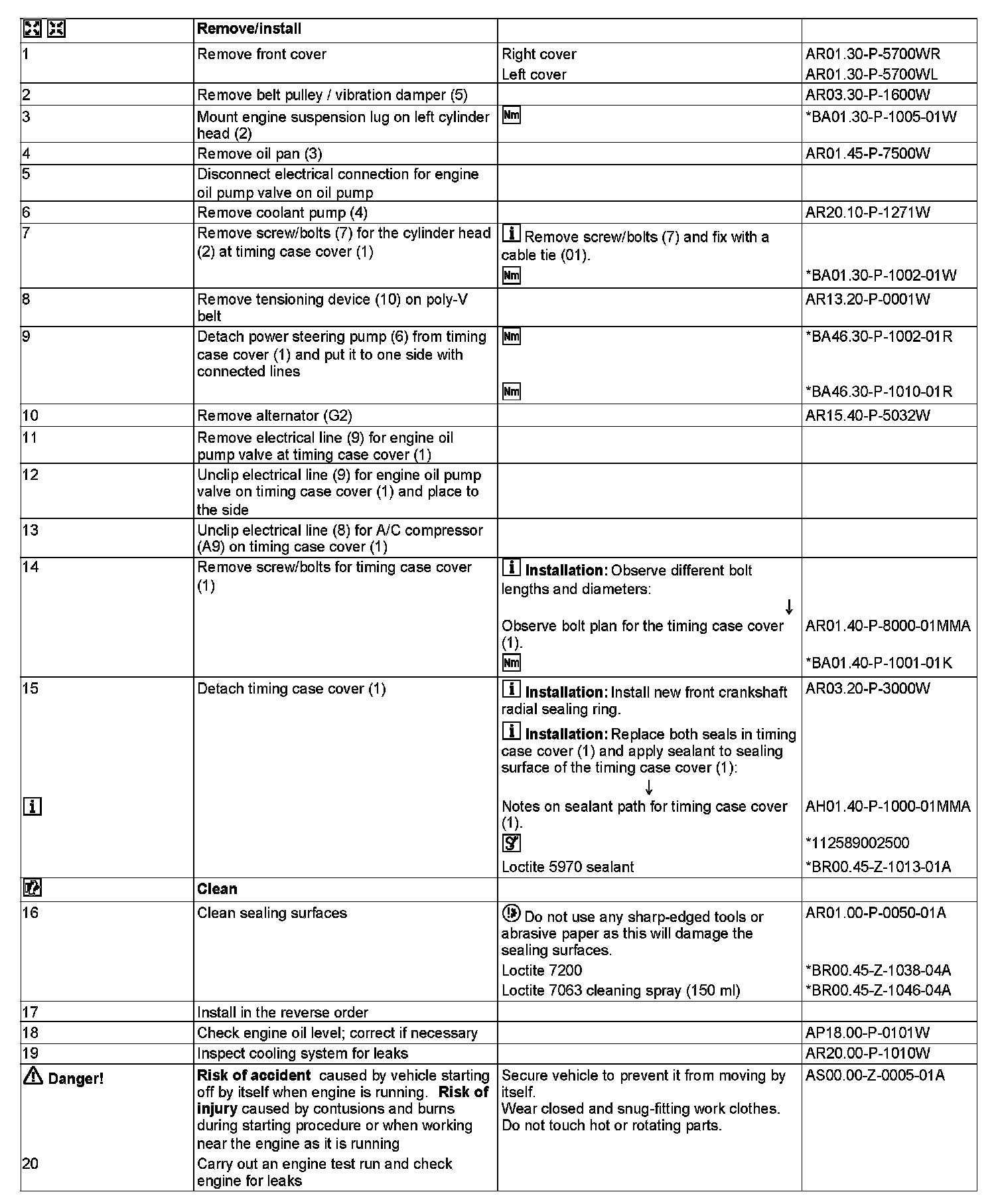 AR01.40-P-8000W Remove/Install Timing Case Cover
