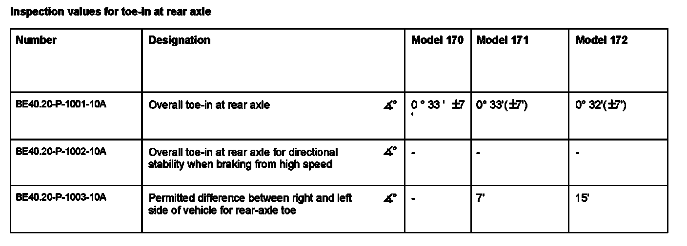 BE40.20-P-1001-10A Inspection Values For Toe-In at Rear Axle