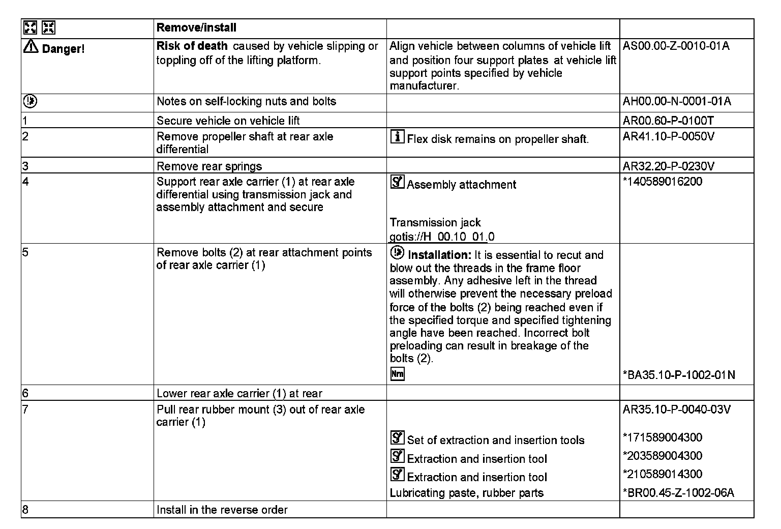 AR35.10-P-0042W Remove/Install Rear Rubber Bushing Of Rear Axle Mount