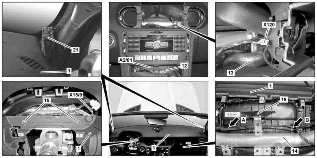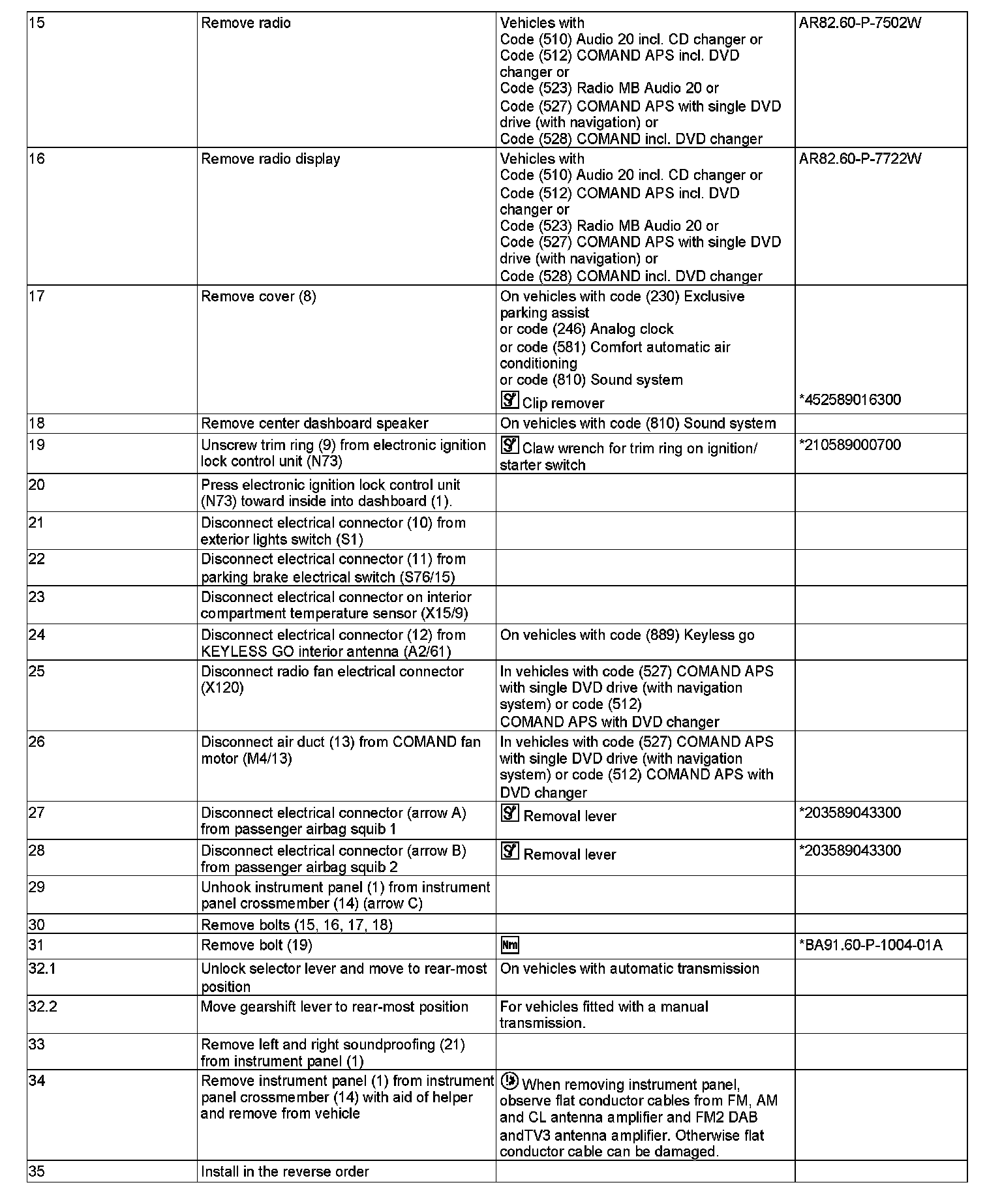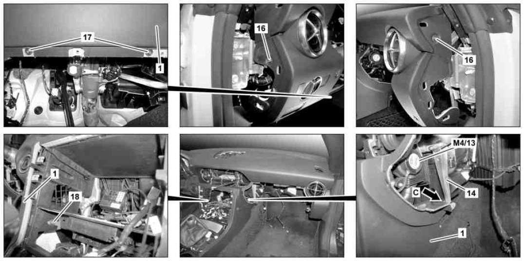 13 Air duct (with code (512) COMAND APS including DVD changer or code (527) COMAND APS with single DVD drive (with navigation))