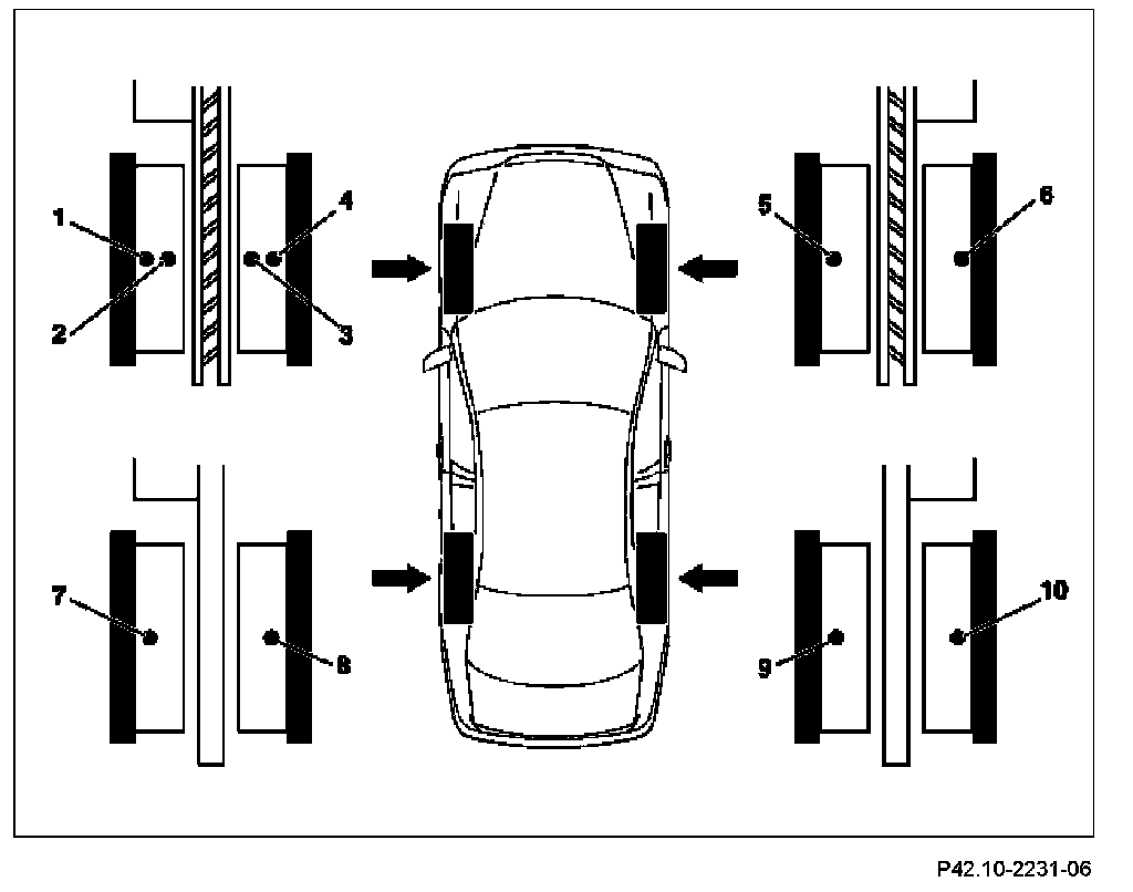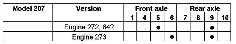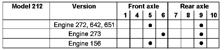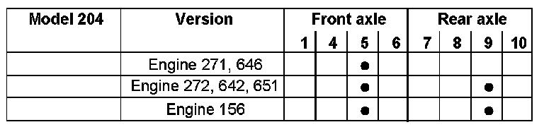 The corresponding installation position of the brake wear sensors is available in the table below.