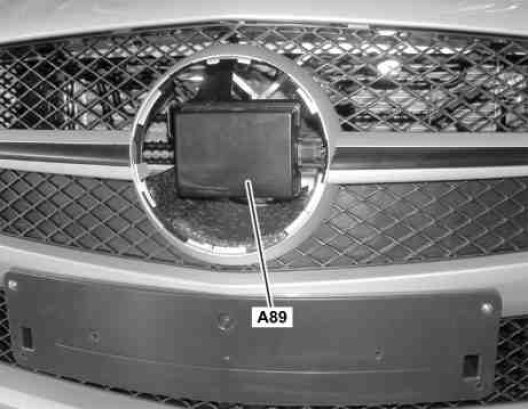 The DISTRONIC electric controller unit is located in the middle in the radiator grille behind the front brand emblem.